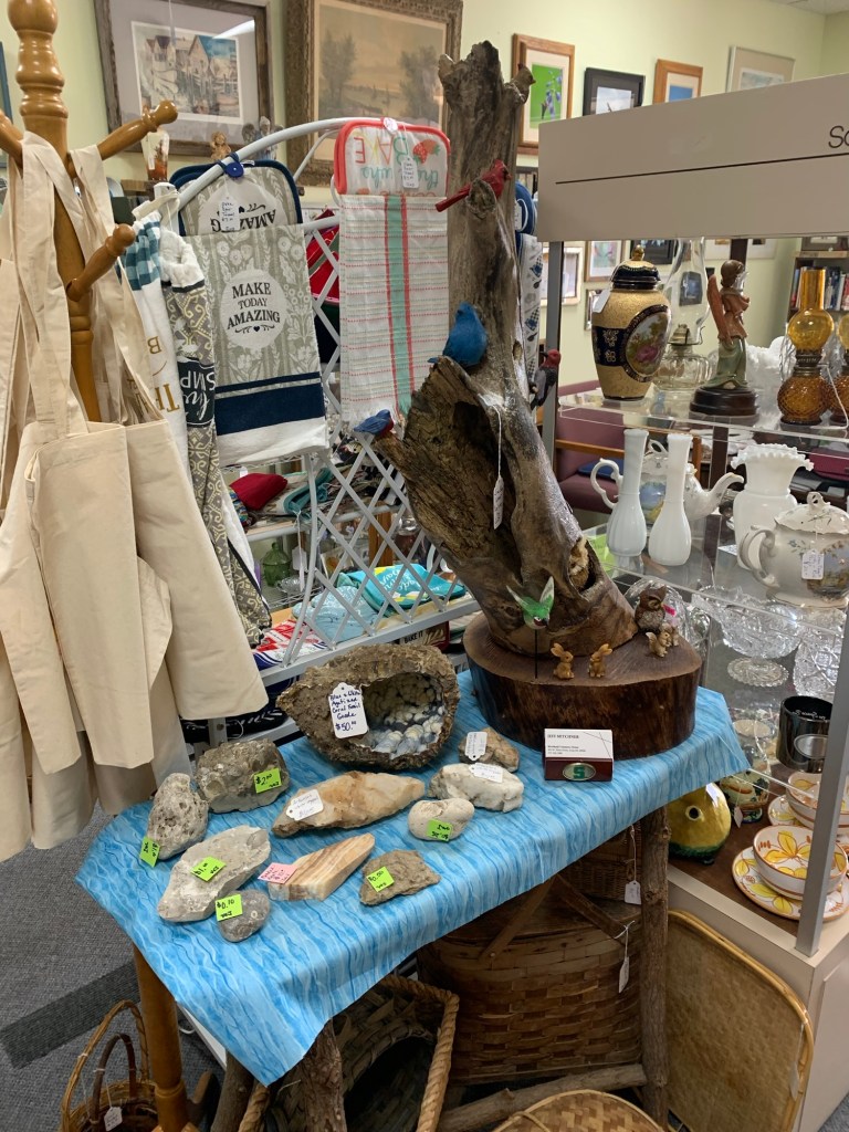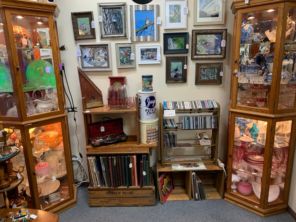 We have over 25 vendors in our shop selling a wide variety of beautiful antiques, arts, and handmade crafts. Check out the photo gallery below of our newest treasures. Photos of our treasures and current events (and any changes of hours due to weather or scheduling conflicts) can also be found on our Riverbank Treasures Facebook page.